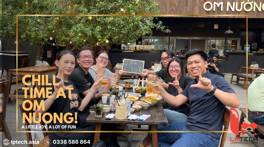 Sau buổi Sharing Day đầy ý nghĩa, đại gia đình LPTech đã có một buổi tụ họp tại Om Nướng. Cả đội cùng nhau ngồi quanh bàn, chia sẻ những câu chuyện từ công việc đến cuộc sống thường ngày. Không gian tràn ngập tiếng cười tạo nên một bầu không khí gần gũi như gia đình. Sự kiện này không chỉ là dịp để thư giãn mà còn khẳng định giá trị cốt lõi của LPTech: sự gắn kết và hỗ trợ lẫn nhau, nơi mỗi cá nhân đều góp phần xây dựng một môi trường làm việc tích cực và bền vững.