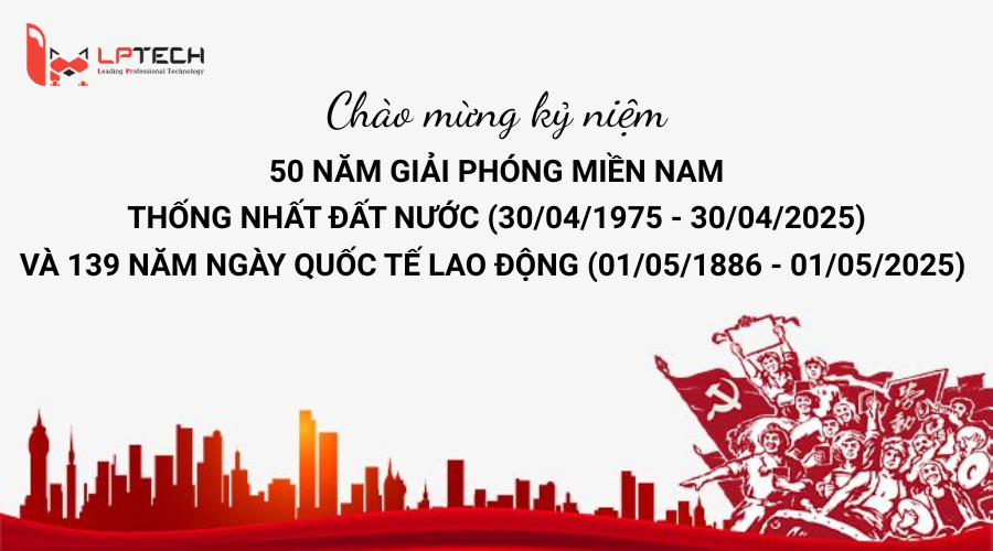 30/4 – đánh dấu chiến thắng lịch sử Giải phóng miền Nam, ngày đất nước hòa chung niềm vui thống nhất, và 1/5 – ngày thế giới tôn vinh người lao động và ca ngợi tinh thần lao động sáng tạo của nhân loại, đều là những dịp đặc biệt trong năm. Công ty TNHH Thương mại Điện tử Công nghệ LP xin gửi đến Quý khách hàng, Đối tác và Nhân viên lời chúc tốt lành, may mắn, tràn đầy năng lượng tích cực trong kỳ nghỉ lễ sắp tới và đồng thời thông báo lịch nghỉ lễ 30 tháng 04 và 01 tháng 05.