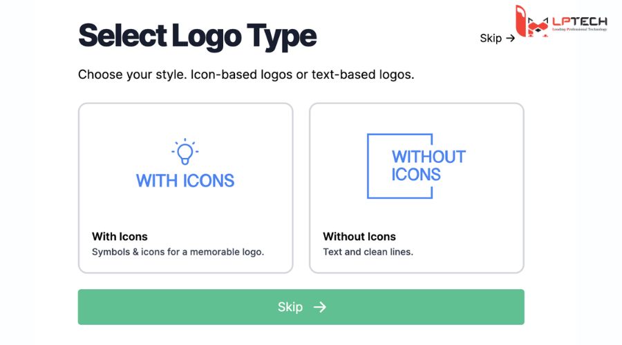 Bước 6: Tại mục “Select Logo Type” bạn có thể chọn 1 trong 2 mục kèm biểu tượng Icon và không kèm biểu tượng Icon.