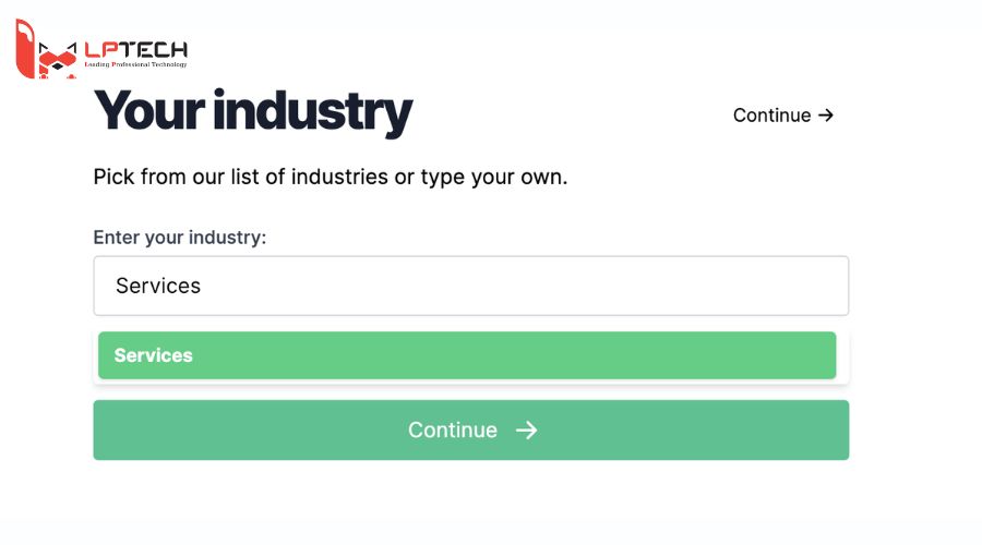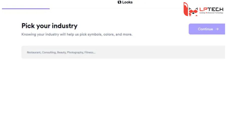 Bước 2: Chọn lĩnh vực mà bạn muốn thiết kế logo. Chọn Continue để tiếp tục