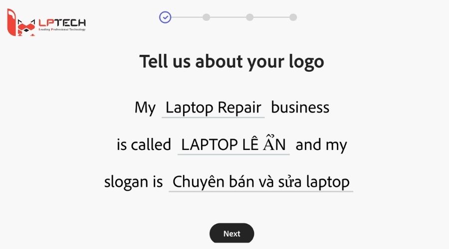 Bước 5: Nhập tên và slogan của bạn rồi tiếp tục nhấn Next