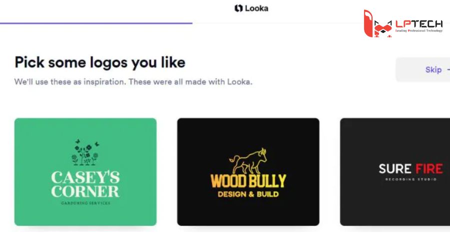 Looka là một công cụ thiết kế nhanh chóng dành cho các designer muốn tạo ra các logo chuyên nghiệp. Tuy nhiên, để có thể sử dụng được phần mềm này thì bạn cần phải trả một mức phí từ 20$ với các gói phân giải thấp và 96-129$/năm với các gói nhận diện thương hiệu. Để tạo logo trên Looka như sau