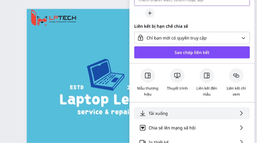 Bước 4: Sau khi đã thiết kế xong, chọn mục “Chia sẻ” và nhấn Download là xong.