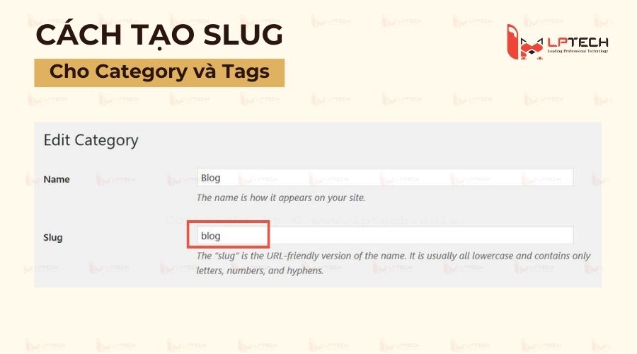 Tiếp theo đây, LPTech sẽ hướng dẫn bạn tạo slg cho: Bài viết, website, category và tags, author slug.
